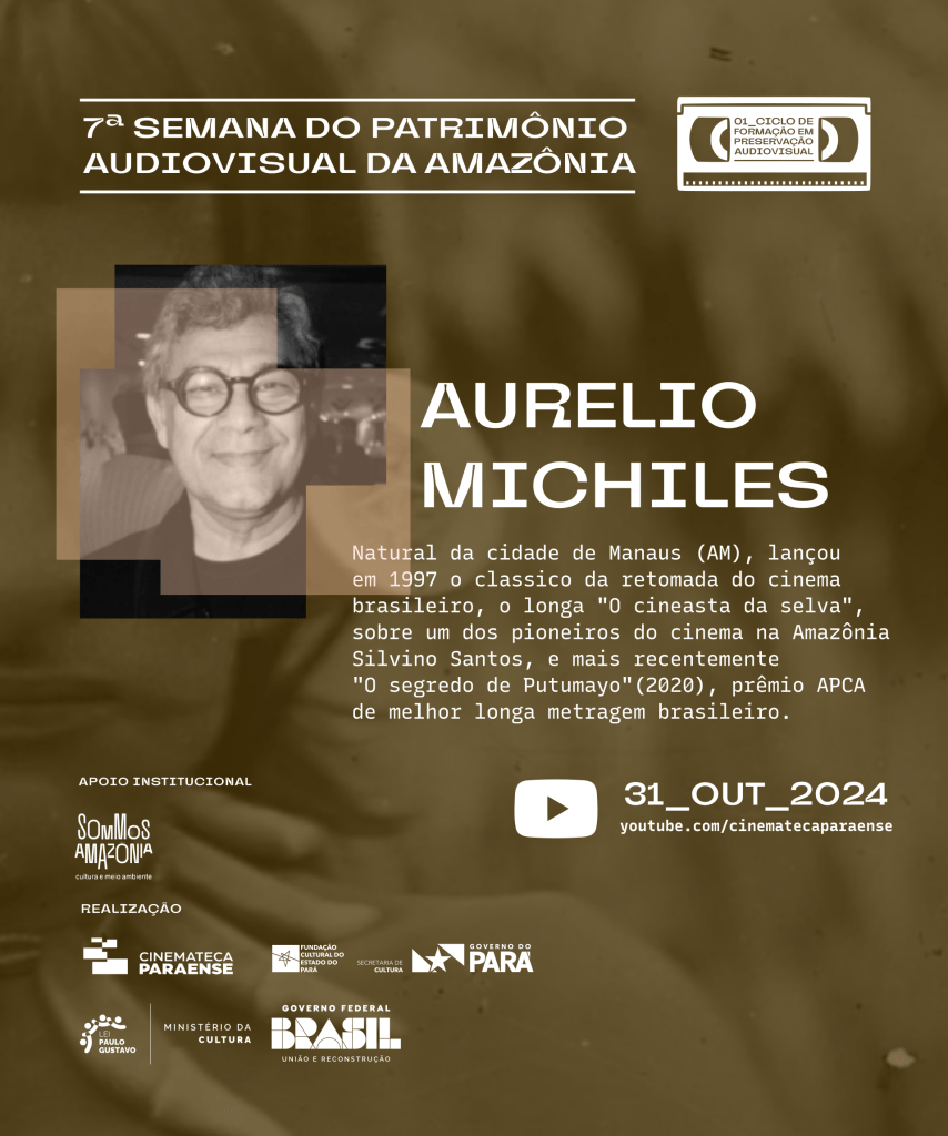 O manauara Aurélio Michiles, diretor da ficção-documental “O cineasta da selva” (1997), marco da retomada do cinema brasileiro sobre o realizador português Silvino Santos, que registrou a Amazônia do início do século XX, entre outras obras como “A agonia do mogno” (1992), “Teatro Amazonas” (2002), “Tudo por amor ao cinema” (2014), e mais recentemente o longa-metragem documental “O segredo de Putumayo” (2020), pelo qual ganhou o prêmio de melhor documentário pan-amazônico no 8º Amazônia (Fi) Doc e o prêmio de melhor documentário brasileiro da Associação Paulista de Críticos de Arte (APCA).