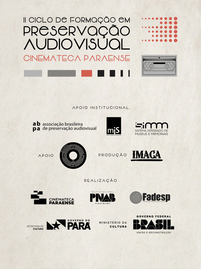 O “Segundo Ciclo de Formação em Preservação Audiovisual” é uma produção do IMACA – Instituto de Museus, Artes e Cinema da Amazônia, com apoio da Discos ao Leo, apoio institucional da ABPA – Associação Brasileira de Preservação Audiovisual, Museu da Imagem e do Som do Pará e Sistema Integrado de Museus e Memoriais. Uma realização da Cinemateca Paraense a partir do Edital Circulação da Política Nacional Aldir Blanc do Ministério da Cultura e Governo Federal, FADESP, Secretaria de Estado de Cultura e Governo do Pará.