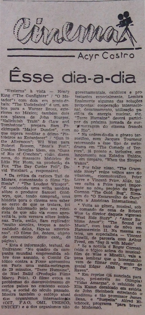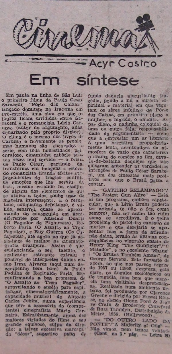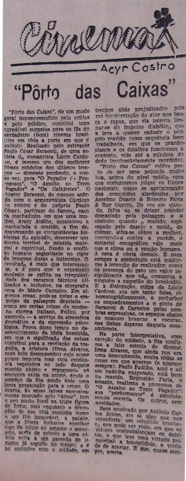 Texto de Acyr Castro no livro Caderno de Cinema sobre os filmes de Líbero Luxardo.