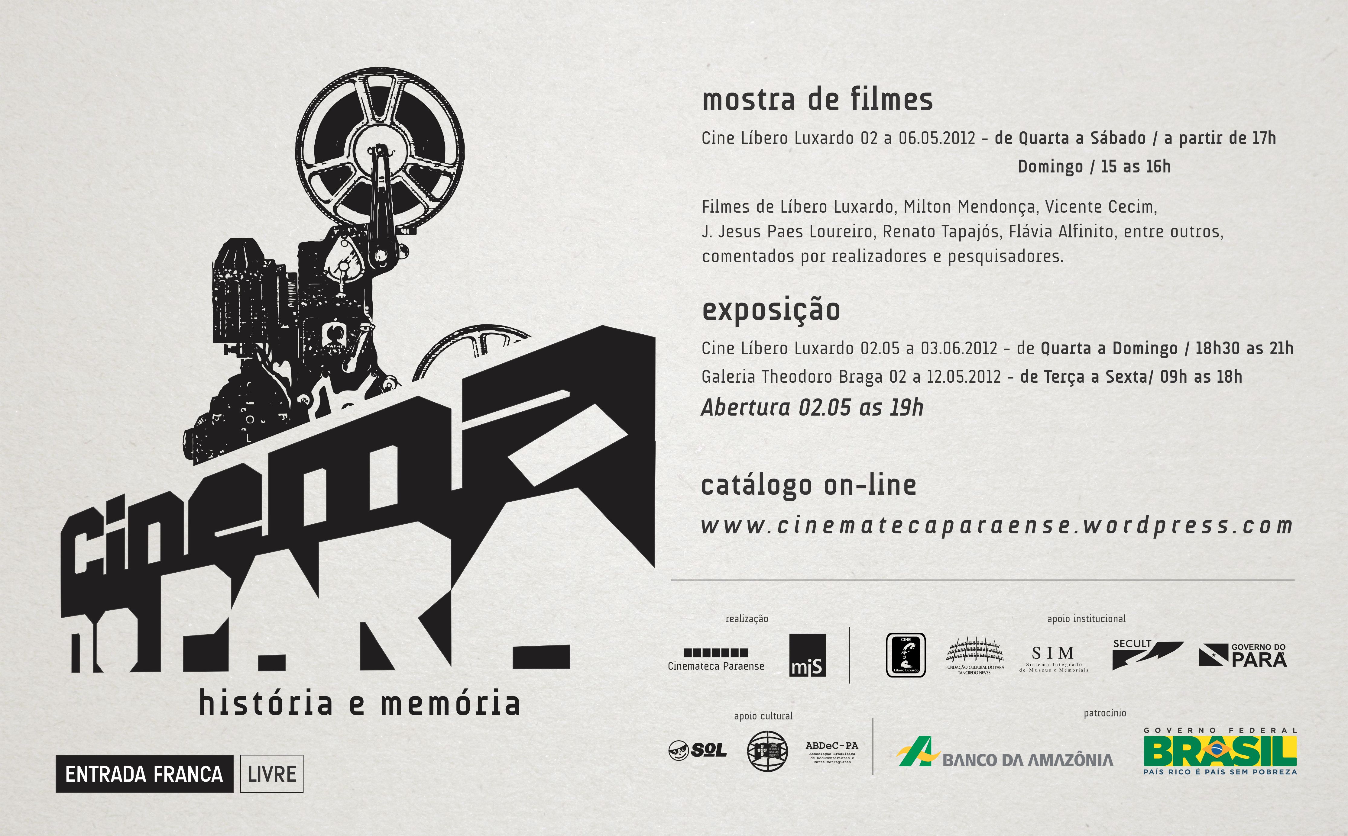 O Projeto Cinema no Pará: História e Memória é uma proposta de discussão e difusão da memória do cinema paraense. Realizadores, filmes, técnicos, atores, salas de exibição, cineclubes e todo o universo desde o fazer até a exibição das obras cinematográficas, farão parte de uma exposição, uma mostra didática de filmes paraenses e um catálogo sobre a história do cinema no Pará.
